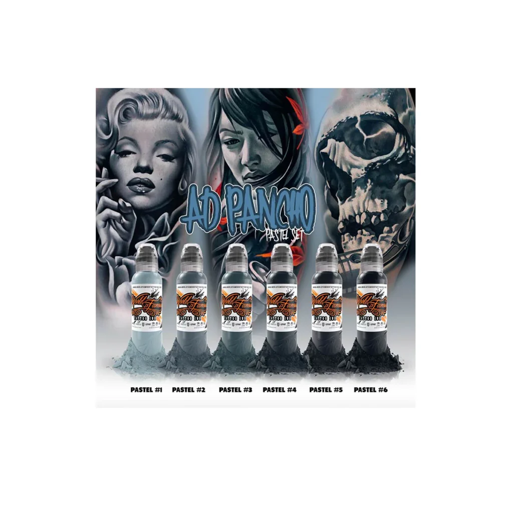 Después de años de peticiones, finalmente Dynamic ha producido un set de sombras (Dynamic Grey Wash Set ) derivado de la probada y verdadera fórmula negra original de Dynamic. Las fórmulas específicas provienen de innumerables pruebas y años de encuestas a artistas específicos de sombras (black and grey) para reunir un conjunto de proporciones comunes para el perfecto set de 4 botellas de 120ml cada una. Dynamic utiliza el agua más pura de nivel hospitalario, filtrada, destilada y esterilizada con rayos UV en las instalaciones de la marca, para asegurar que la solución sea de la mayor pureza manteniendo al más alto nivel de calidad. La adición de Hamamelis Virginiana a esta solución no sólo añade una visible suavidad al tatuaje, sino que también aporta calidad y sensación calmante a la piel del cliente. #20- Sombra suave y ligera. La más sutil del set (Extra Light Wash) #40- Sombra suave de tono medio-ligero (Light Wash) #60- Sombra profunda y sedosa de tono medio (Medium Wash) #80- Sombra oscura y profunda con cuerpo. La más oscura del set (Dark Wash)